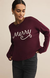 A lightweight cotton knit with an embroidered “Merry” detail brings a touch of joy to your seasonal lineup. Easy to wear solo or layered over denim.