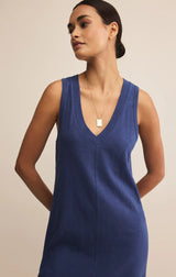 This body-skimming midi dress is an instant classic with its v-neckline, sleeveless cut, and lightweight cotton slub jersey fabric. Simple yet stunning, it’s the perfect piece for warm-weather styling.