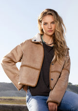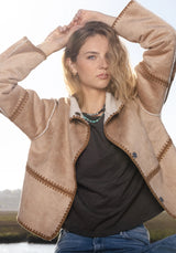 luxe suede & sherpa, reversible w/ stitching detail