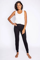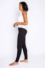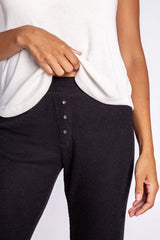 The world's best hybrid-lounge-pant. Part slimline jammie pant, part versatile jogger. The pair you'll grab for their super soft 2x2 rib in peachy jersey. Clean front with three faux button fly. Truly, essential. Care tip: we don’t mix our fleece with towels or other rough laundry to minimize piling.