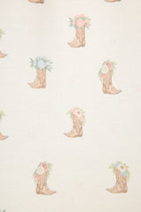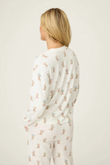 Saddle up for sweet dreams. This long-sleeve pajama tee is crafted in soft peachy jersey and scattered with illustrated Western boots accented by delicate floral details. Designed with a classic crew neckline, easy long sleeves, and a relaxed fit, it’s the perfect layer for winding down early, sleeping in late, and easing into slow mornings at home.