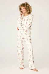 Round up some cozy charm. This ivory pajama Top—crafted from soft peachy jersey—pairs a scalloped long sleeve top with an allover western dog print with cowboy hats, boots, guitars, horseshoes, and playful pups ready for the rodeo. A perfect Top for lazy mornings or curling up after sundown.
