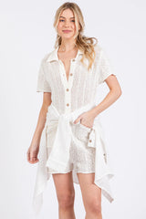 BUTTON DOWN CROCHET SWEATER ROMPER.