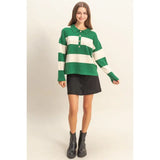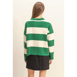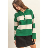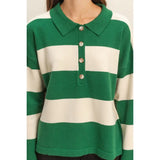 This striped sweater features a charming polo collar with front button detailing, adding a preppy touch to your wardrobe. Ideal for layering or as a standalone piece, this sweater is perfect for casual outings or a cozy day in. Pair with denim for a relaxed look, or dress it up with slacks for a smart-casual ensemble.