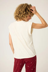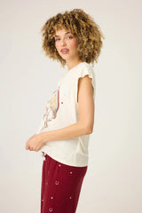 A graphic tee that tips its hat to Western nostalgia. This soft ivory style showcases a vintage-inspired cowboy and rainbow sunset print, making it perfect for layering or wearing solo with your favorite denim.