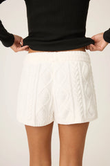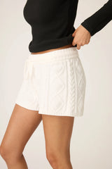 The ultimate in stay-home softness, these chenille cable knit lounge shorts are perfect for cozy nights in or slow mornings at home. The creamy ivory hue feels fresh and wintry, with a pull-on fit and adjustable drawstring waist for curling up on the couch or reading in bed.