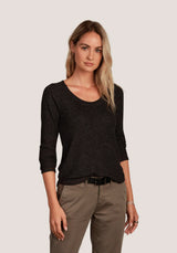 Brushed Waffle Scoop Neck Vintage Black