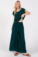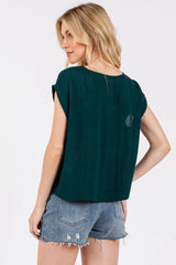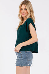 WOVEN BOXY TOP WITH EXTENDED SLEEVE AND ROUND NECK.