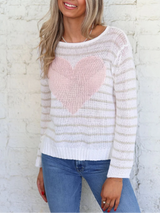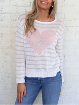 Soft, sweet, and effortlessly cozy, the Amelie Heart Long Sleeve Cotton Crew is a feel-good knit with charming detail. Crafted from breathable cotton, this lightweight sweater features a classic crew neckline and an easy, relaxed silhouette perfect for everyday wear. Finished in a soft cream hue with playful pink heart accents, it brings a subtle pop of color and personality to your wardrobe. Easy to style and endlessly comfortable, it pairs beautifully with denim, skirts, or layered looks for a casual, feminine vibe.