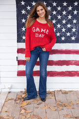 Experience the comfort of our V Cotton Sweater, featuring a Game Day graphic design and long sleeves for added warmth. Made with high-quality fabric, this sweater is perfect for any sporting event, providing both style and comfort.