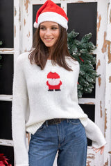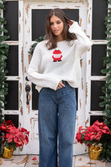 A festive wool knit sweater with delicate little Santa stitched on the front!