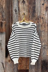 Experience cozy comfort and timeless style with the Madeline Striped Crew in Pure Snow and Black. This black and white ribbed crew sweater offers a flattering fit and classic contrast, perfect for layering or wearing on its own. Its soft ribbed texture ensures warmth and flexibility, making it a versatile addition that supports your everyday wardrobe with effortless elegance.