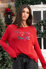 Spread cheer with every wear in this festive favorite from Wooden Ships! The Merry & Bright Crew brings holiday spirit front and center with colorful lettering and a cozy, relaxed silhouette. Featuring a soft knit, drop shoulders, and a boxy fit, it's the perfect blend of comfort and charm. Whether you’re sipping cocoa, decking the halls, or heading to a holiday gathering, this joyful sweater makes every moment feel a little more magical.