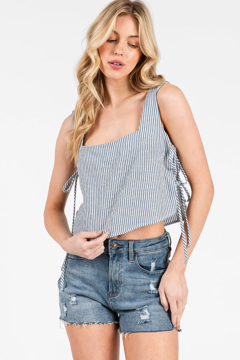 The Pixie Top is a cute tie-side tank. Pairs best with the matching Pixie Pant or a pair of shorts!